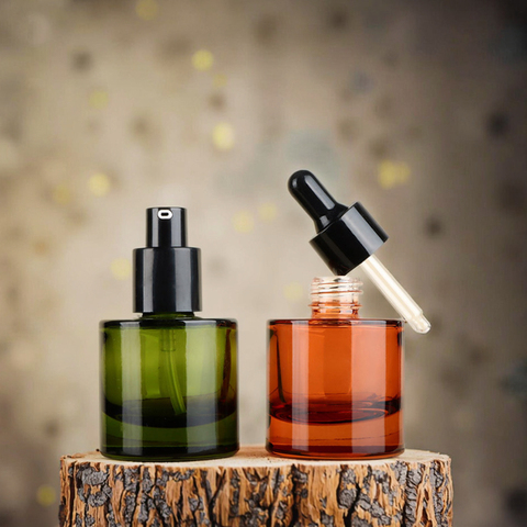 Fabrika stok 20 diş 30ML kalın alt kahverengi özü yağ şişesi yeşil toptan serumlar şişeleme cam şişe özü damlalık